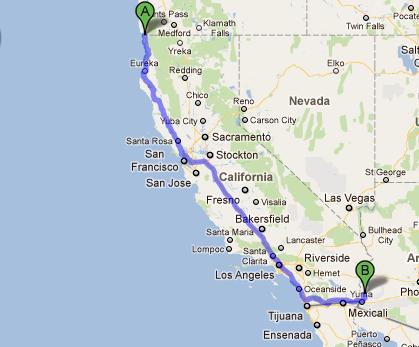 Circuitous routes also don’t count. The drive must take place on the presumably quickest route from each point within the state’s boundaries. Sure one can traverse as many roads as possible in California without criss-crossing and be out there for days, but that’s not the point of this. Essentially what is the longest route in a state for two points that is also the fastest route between those two points.