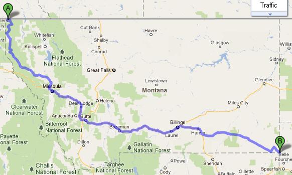 Montana’s drive takes into account the remote (and I’m not sure how “drivable”) Kootenai National Forest. Taking an “unknown road” that starts above Hawkins Lakes, one can go all the way to the end of the Albion Road border with South Dakota without leaving Montana – one of eight border roads with South Dakota, but the only one going North/South). There are some more northeasternly Kootenai Forest roads that can’t avoid going into Idaho, however I’m not completely sure 838 miles is the longest point-to-point Montana drive…