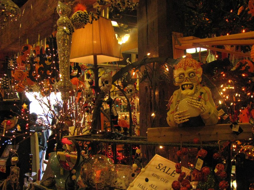 We had a little time to hit up the Christmas Attic, bespeckled with various Halloween ornaments to go with the hefty helping of their year-round yuletide stock. I’ve been to Christmas stores before, but this takes it to another level (two levels actually, connected by two rickety wooden staircases on each end). The place is usually packed and you feel like a bull in a china shop winding through. If you don’t accidentally bump into a glittery santa or candycane lightbulb while your here, I implore you to try your hand at Teenage Mutant Ninja Turtles for the ol’ Nintendo (especially, the water level).