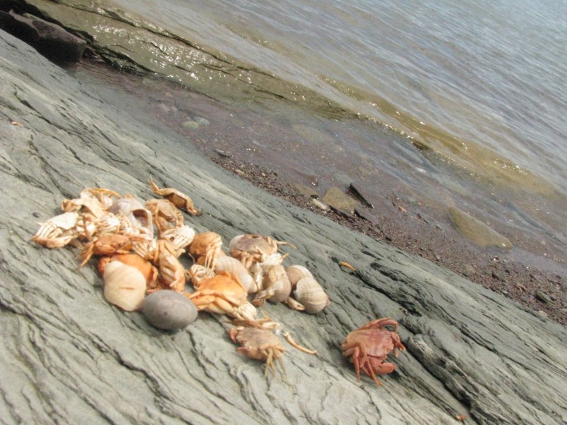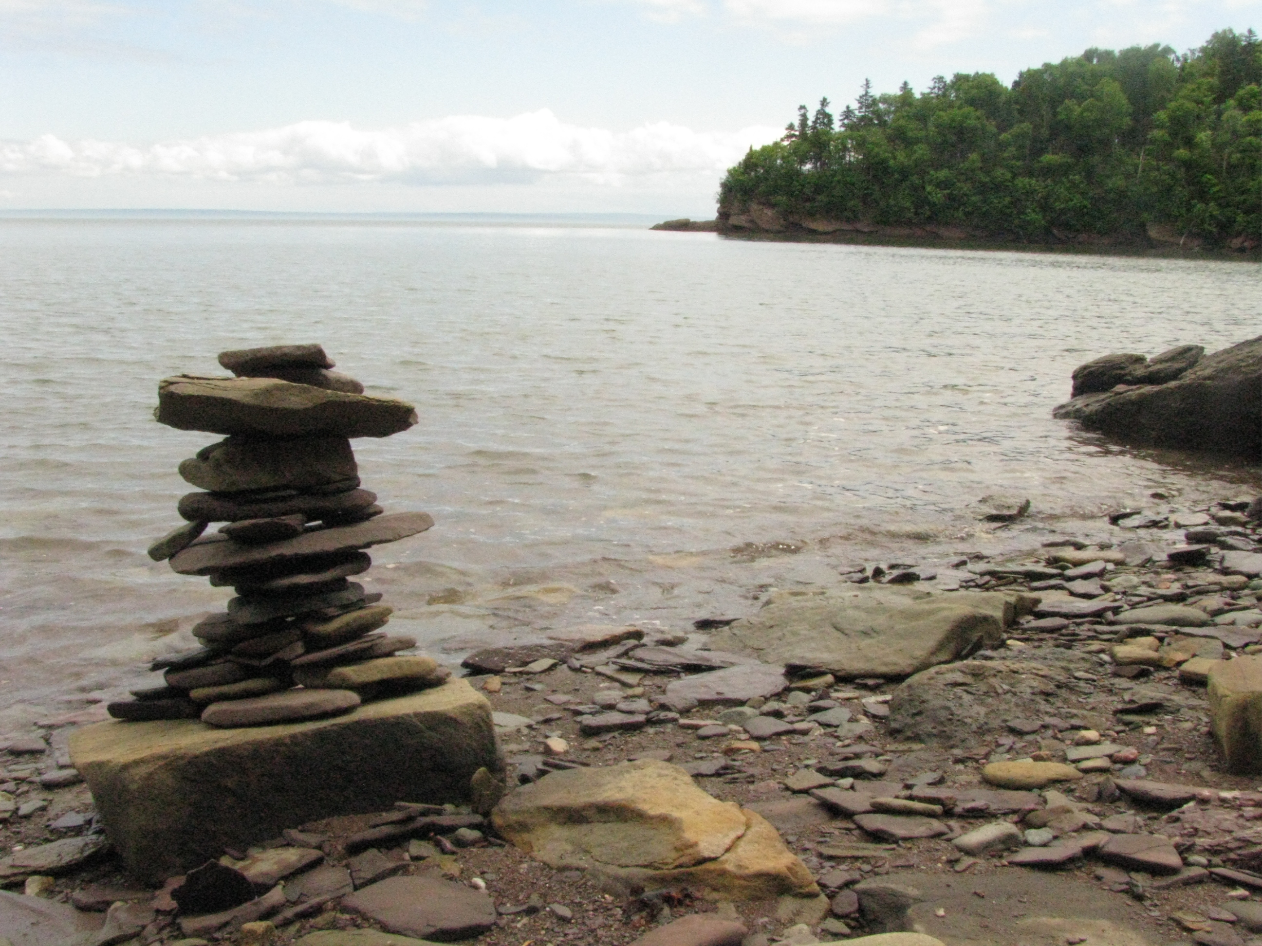 Our last stop at the park was Herring Cove which is a purer beach than that of Pointe Wolfe – but it’s not without it’s rocky side. Huge boulders litter the extreme eastern edge of the coast and it makes fun fun climbing and exploring opportunities. We even saw an inuksuk stacked on the shoreline. Little crabs were washed ashore by the tides and tiny minnows sparkled along the sand, flip-flopping as they struggled for their lives. A group of people were picking them up and tossing them back into the water in hopes that they would save a few that may likely wind up as food for a predator later.