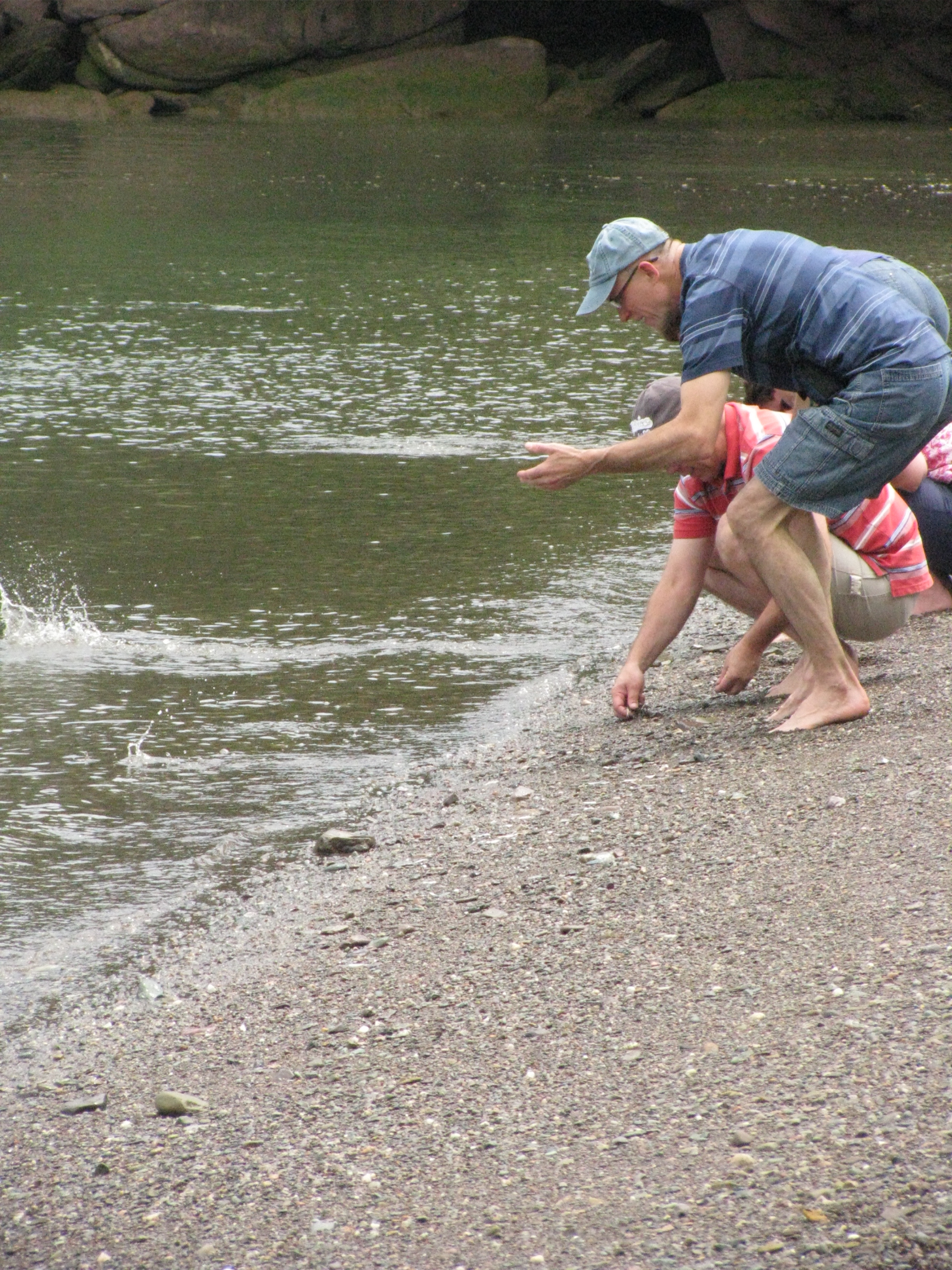 We got back on the road and drove down (through a covered bridge, a relatively common sight in New Brunswick) to Point Wolfe, a small little bay that draws water into the Pointe Wolfe river. The views from Pointe Wolfe beach are incredbile, with tall pines escalating up the mountainside and a rocky shore that winds around and through the bay. There are all sorts of interesting shells and other beach strewn artifacts that come in with the wild tide changes and we had fun digging through the natural treasures.