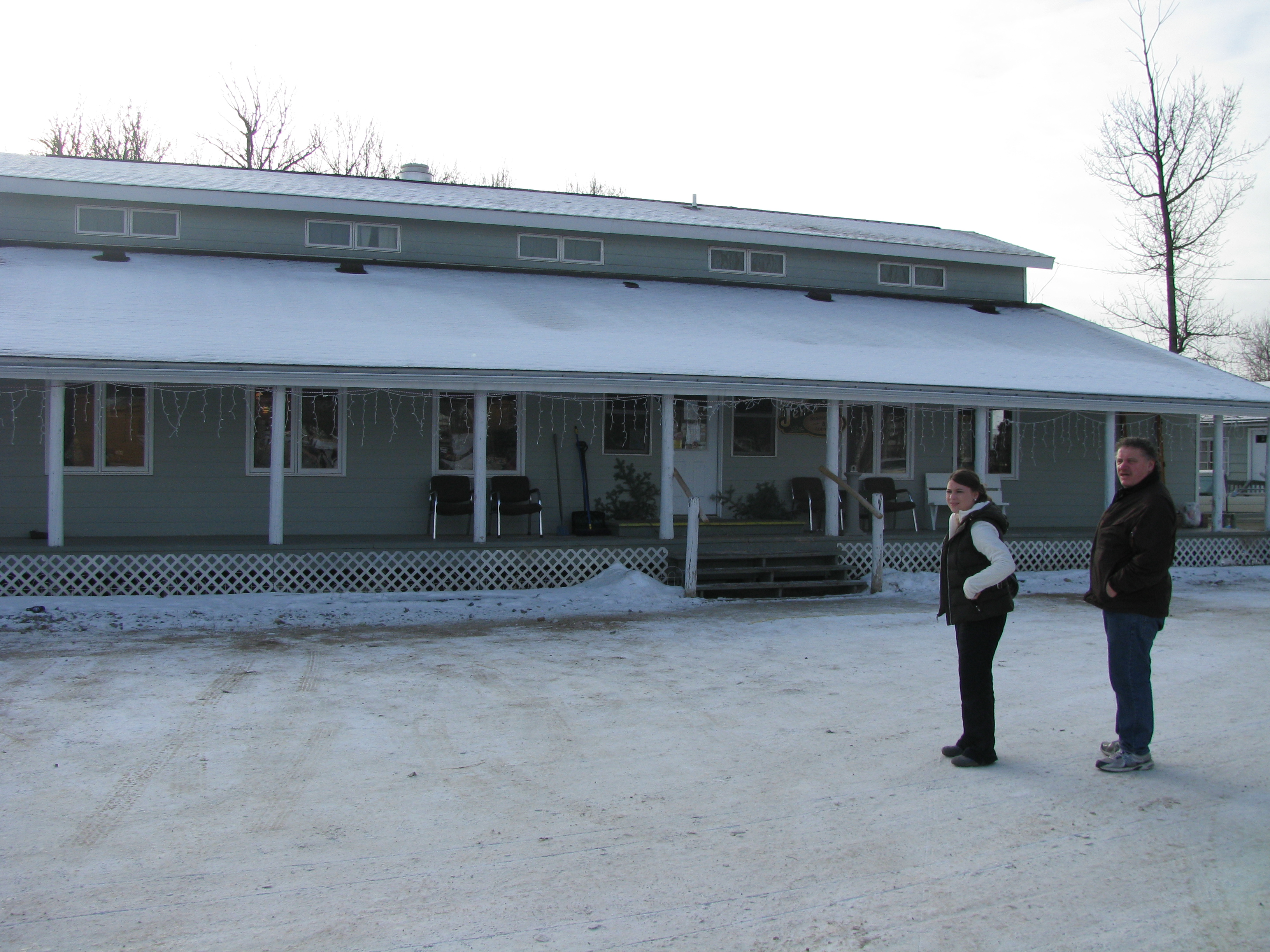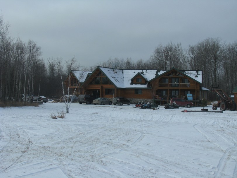 The “town” comes into view quite quickly after leaving Jim’s. There are a few roads in the community and houses range from trailer-size to typical suburban neighborhood quality. One that stuck out in particular was this huge log house that we guessed was a resort. We found out later that, no, it was actually just a house (for three people) that was going to be utilized as a bed and breakfast sometime in the future and that it would be hosting the town’s New Year’s party as well.