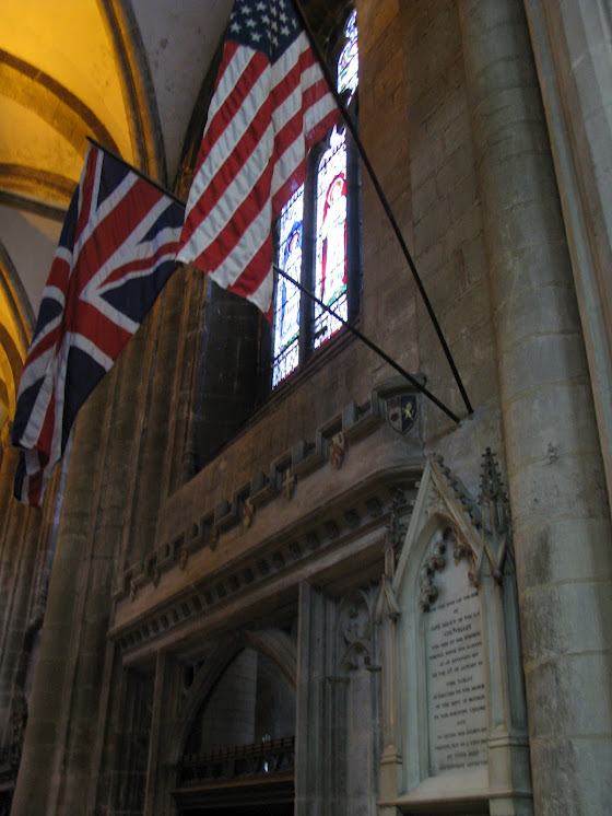 A few other non-Harry Potter factoids to be noted: There is a memorial to John Stafford Smith, the composer of “To Anacreon in Heaven”, the tune in which Francis Scott Key penned the lyrics of “The Star-Spangled Banner” to. Affixed to the memorial are flags for both Britain and the U.S. Nearby is a ceremonial staff used in the coronation of Queen Elizabeth II in 1953. According to Wikipedia, there are some of the oldest depictions of golf and a football-type sport in the stained glass windows. I wasn’t aware of that before my visit, so I didn’t look out for these images, but they appear to be on the large stained glass window of the main building.