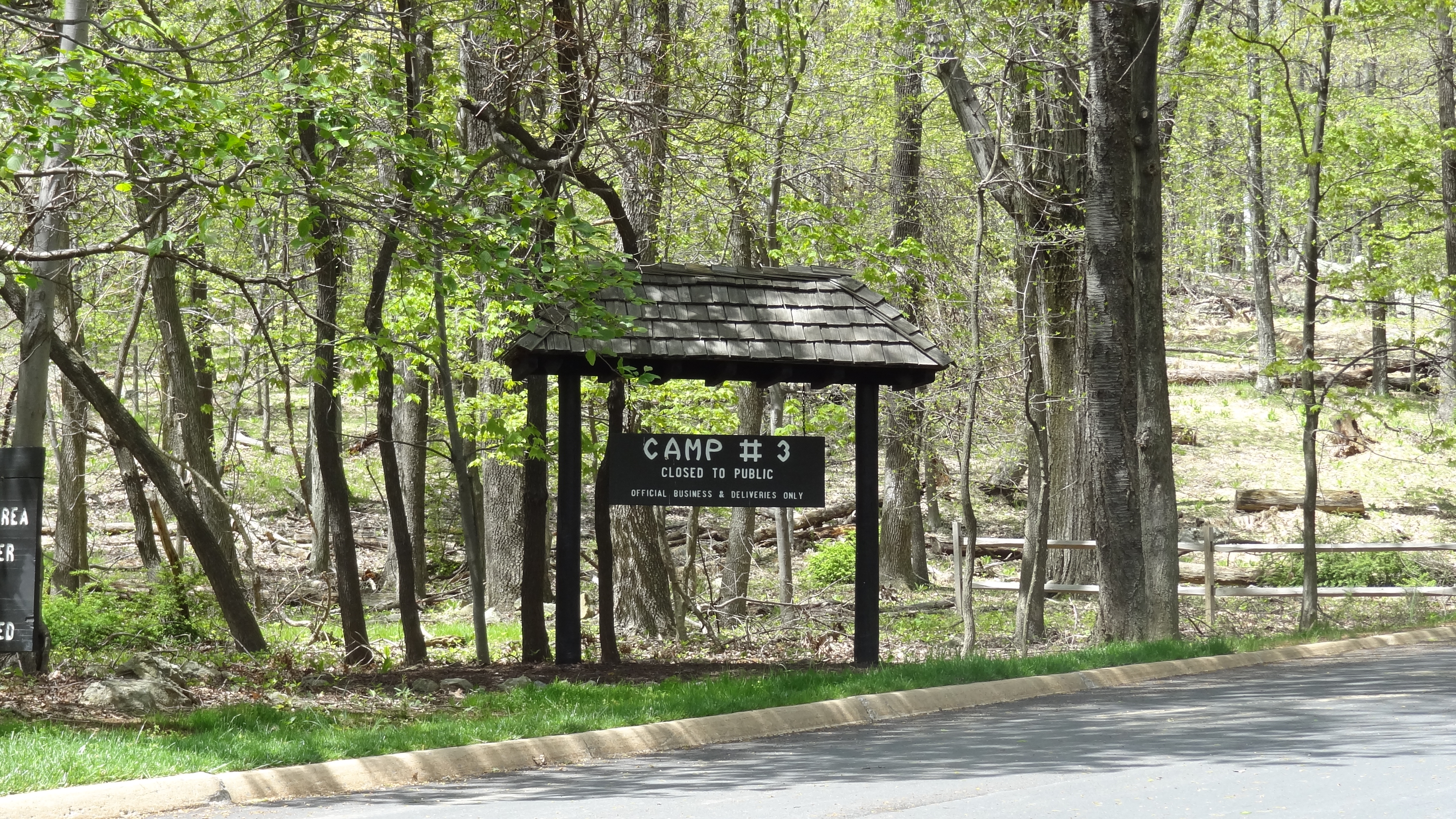 I’m not unearthing any secret information here. Google Maps has displayed the exact location of Camp David for some time now. To see the “Camp #3” sign and entrance, all you need to do is get on the park’s main road (Park Central Road) and drive a little further past the most popular trails. The entrance is about a mile past the Hog Rock parking lot. I’m sure many people miss it, only going so far as Hog Rock during their Catoctin visit.