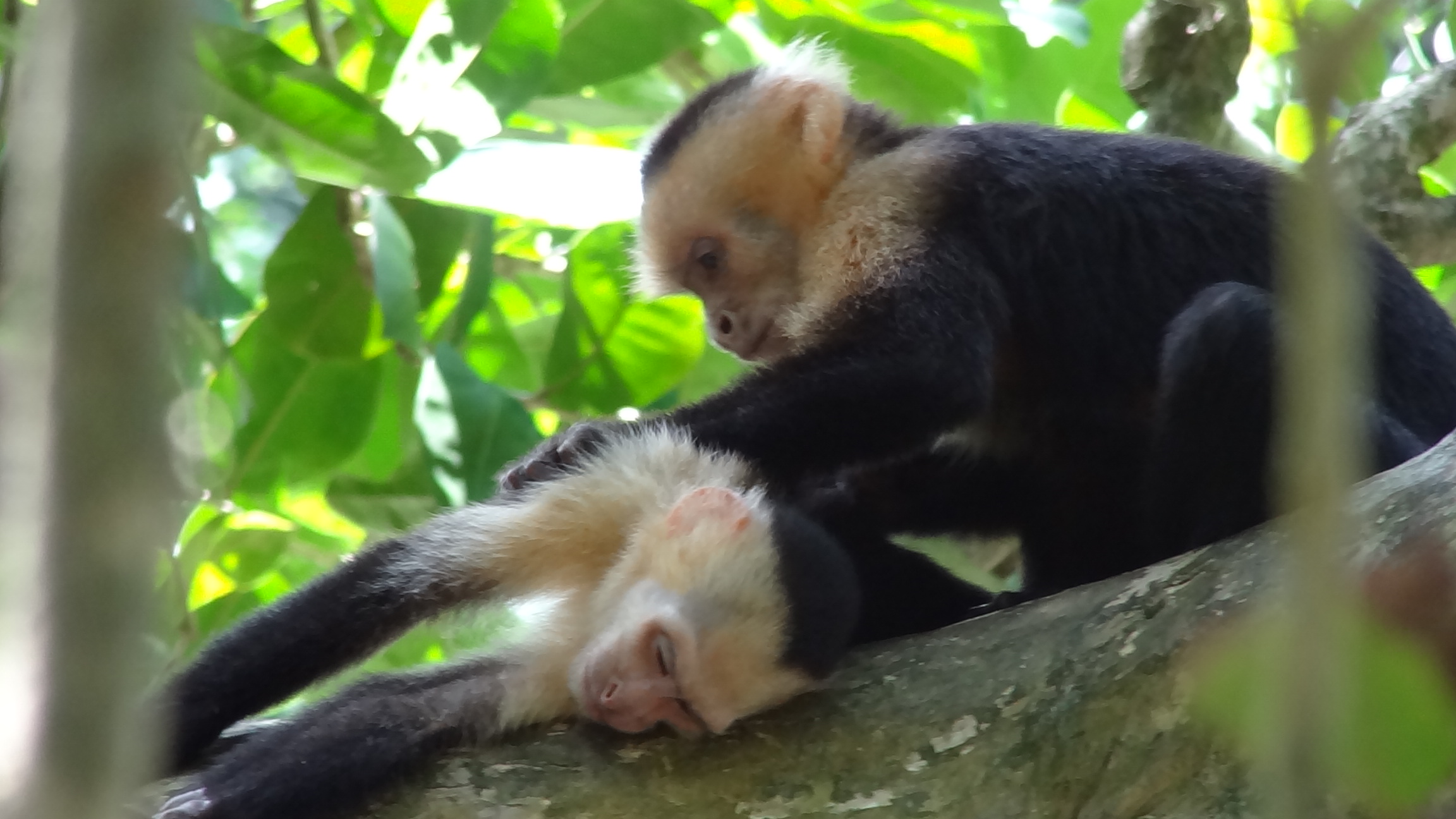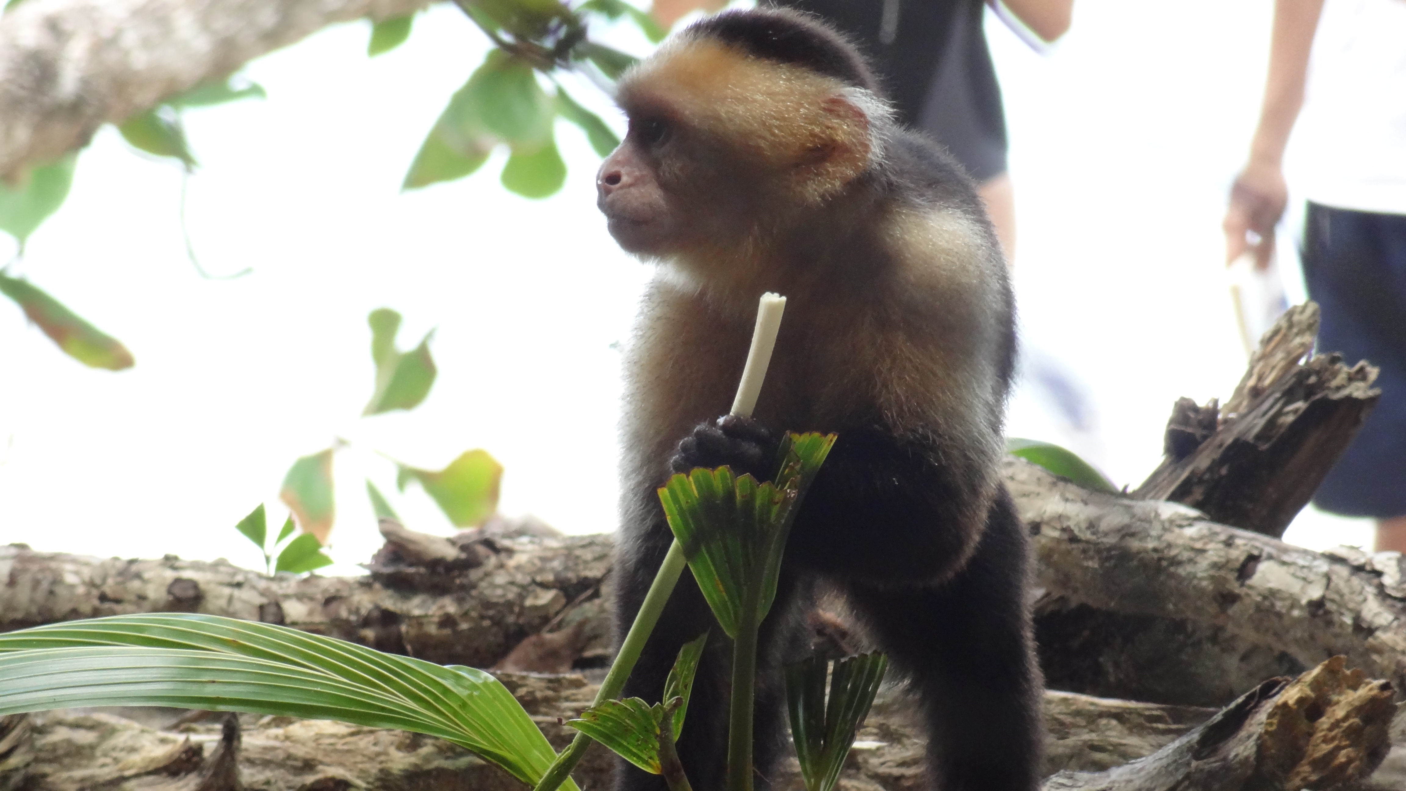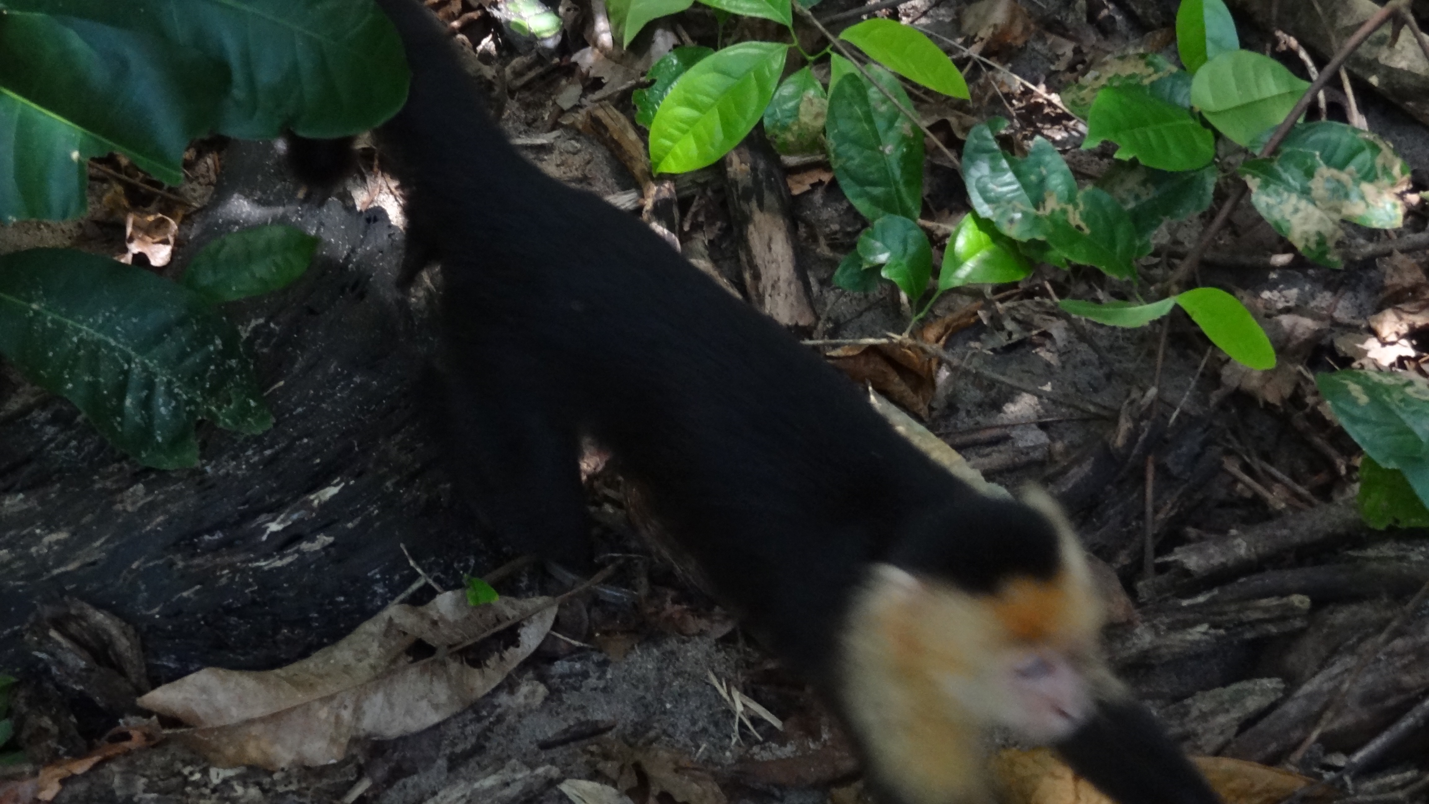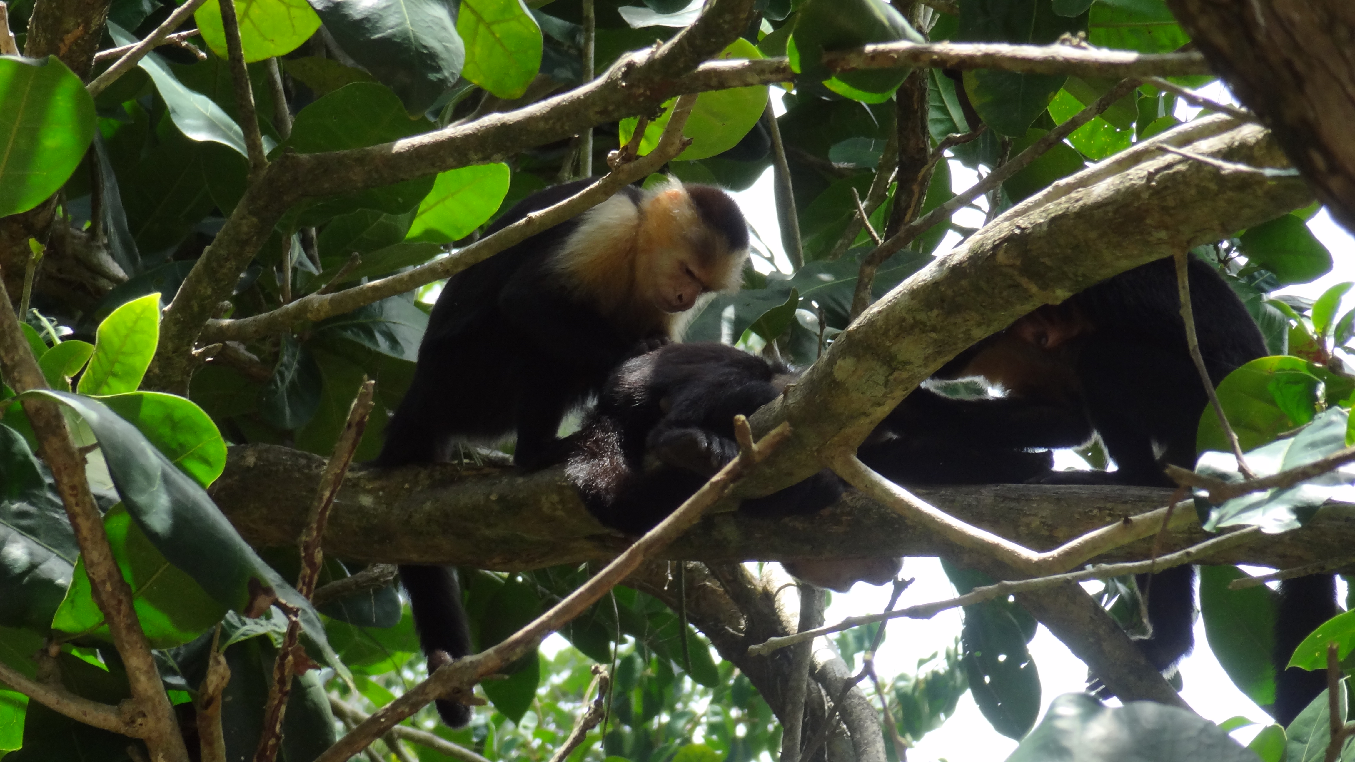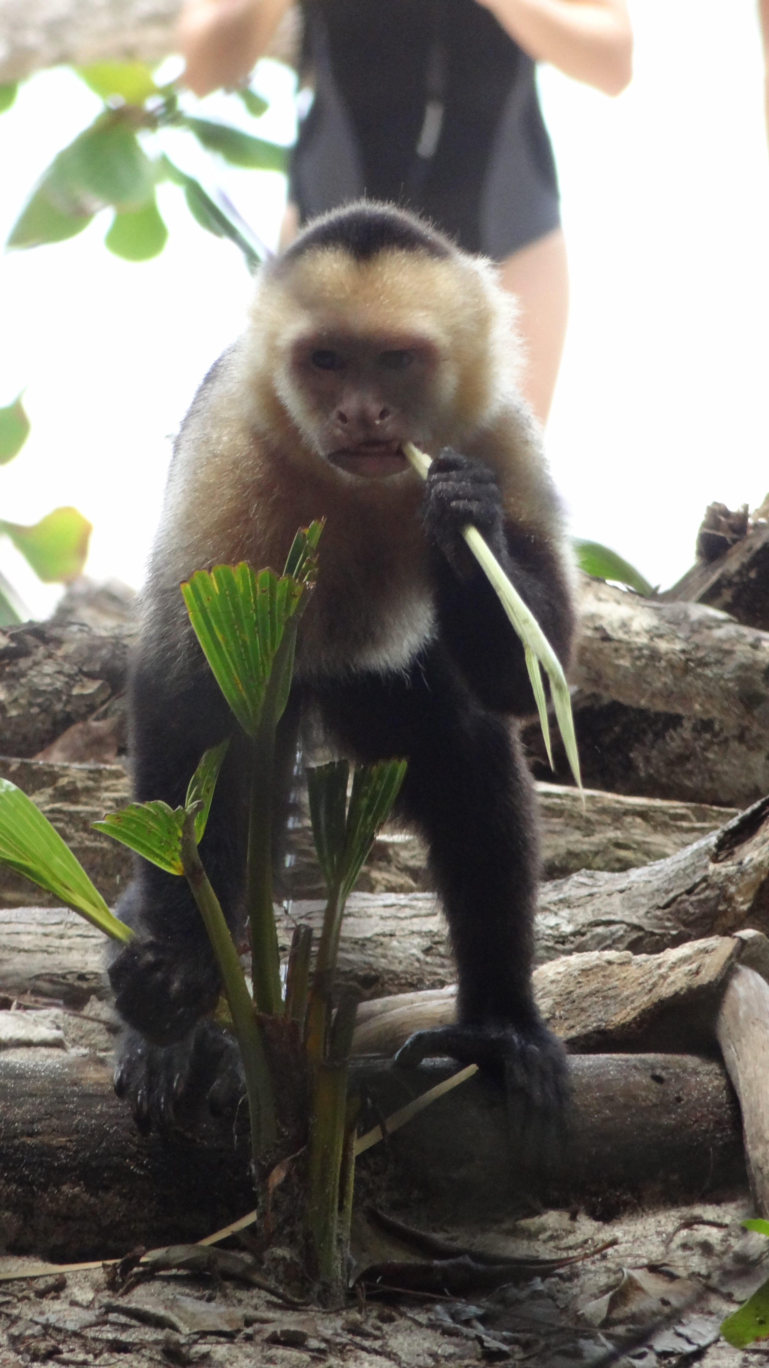 Capuchins are quite the cute bunch, but upon further research I found out that the males will kill younger capuchins just to get with the mother (and the mother generally comes to accept this after vain attempts at protecting the young monkeys). Yikes! We also spotted one Central American squirrel monkey further back on the trails (couldn’t get a good photo of it, though), which apparently practices more humane courting rituals.