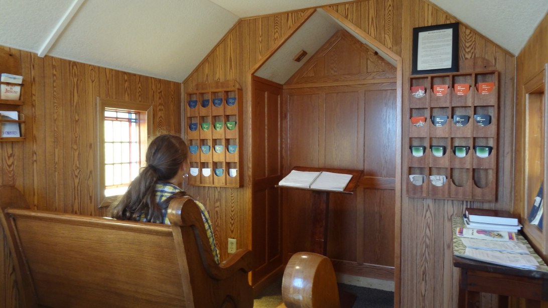 The interior of the chapel. There is just enough room for a service of nine people (including the pastor).