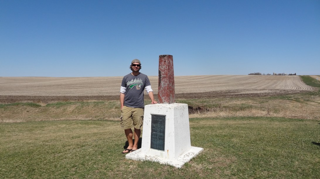 Me standing on the “dominant” side of the tri-point, South Dakota. Minnesota lies to the north and east of the marker, while Iowa sits to the south and east. South Dakota takes up the entire side west of the marker.