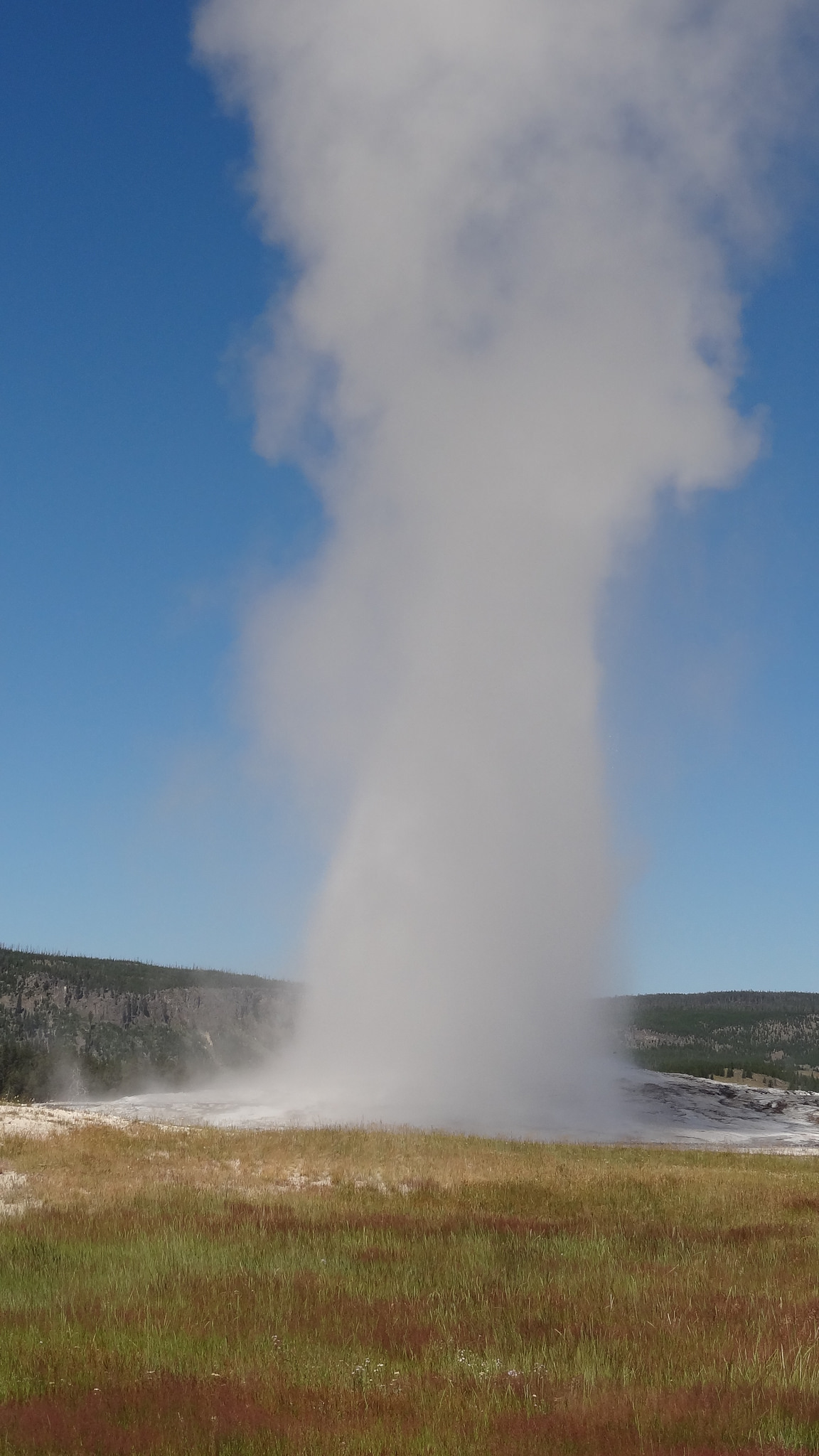 Not really Old Faithful in all its glory. We got soaked as the wind pushed most of the water onto us. That, and it was generally on the smaller side of Old Faithful eruptions.