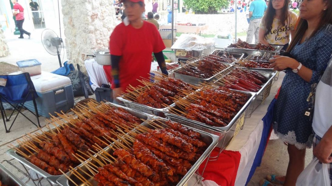 Time to feast at Saipan’s Thursday night market. BBQ-on-a-stick for everyone!