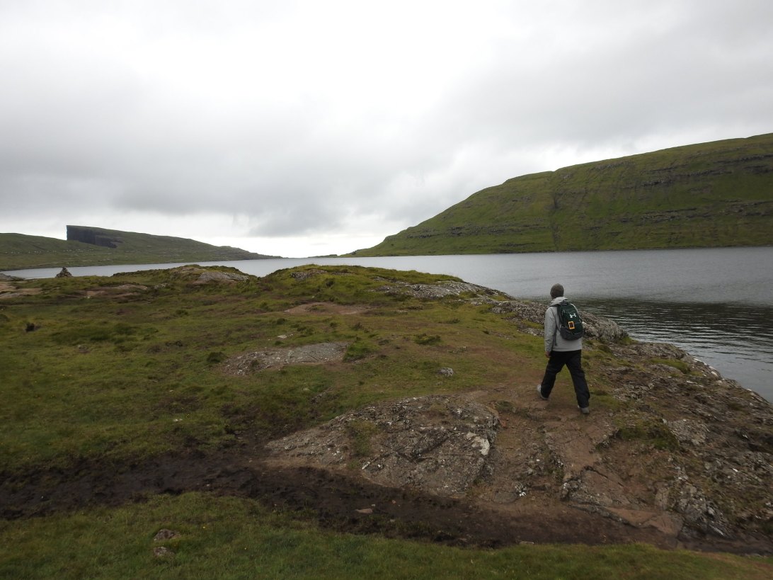 The point you see jutting out to the left is our ultimate destination here at Sørvágsvatn, the largest lake in the Faroes.